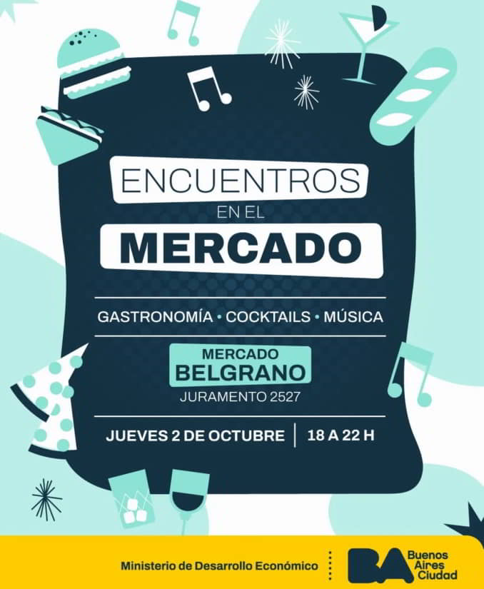El jueves 2 de octubre el Mercado de Belgrano será protagonista de “Encuentros en el Mercado“, una iniciativa del Ministerio de Desarrollo Económico porteño a través de BA Capital Gastronómica. De 18 a 22 horas, el tradicional mercado de Juramento se transformará en un punto de encuentro para quienes buscan disfrutar de buena música, gastronomía y tragos en un ambiente relajado.