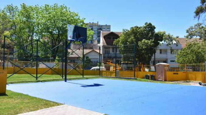 Entre las principales intervenciones se destaca la construcción de un nuevo playón deportivo para básquet de 175 m², cercado por rejas en sus cabeceras, y la instalación de un gran patio de juegos de 690 m² con solado de caucho, donde se incorporarán juegos inclusivos como un mangrullo, calesita, juegos resorte, paneles interactivos y una esfera con tobogán. Este sector se vinculará con un nuevo espacio de descanso pensado para el disfrute de toda la familia.