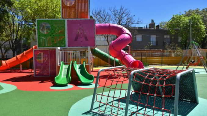 Además, se recuperarán 275 m² de superficie verde absorbente mediante la demolición del segundo patio de juegos sobre la calle Cuba, favoreciendo un entorno más sustentable. El plan también incluye la reestructuración del sistema de riego y un nuevo diseño paisajístico que acompañe la transformación de toda la plaza.