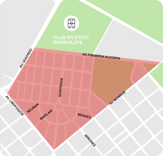 El ingreso al parking de Ex Tiro Federal es por la calle Campos Salles mientras el parking de River tiene el acceso por Av Figueroa Alcorta