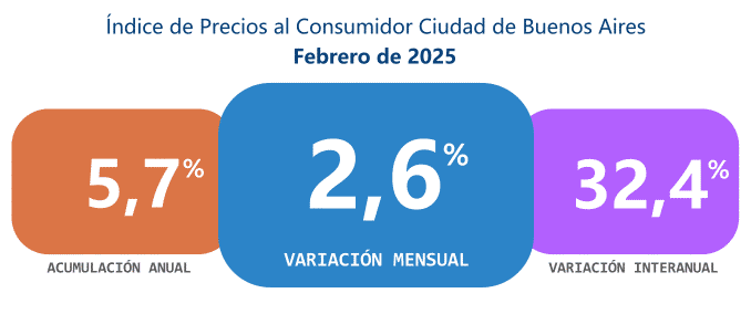 La Dirección General de Estadísticas y Censos porteña informó un incremento del 2,6% promedio de los precios en la Ciudad durante febrero, y acumula 32,4% en los últimos 12 meses.