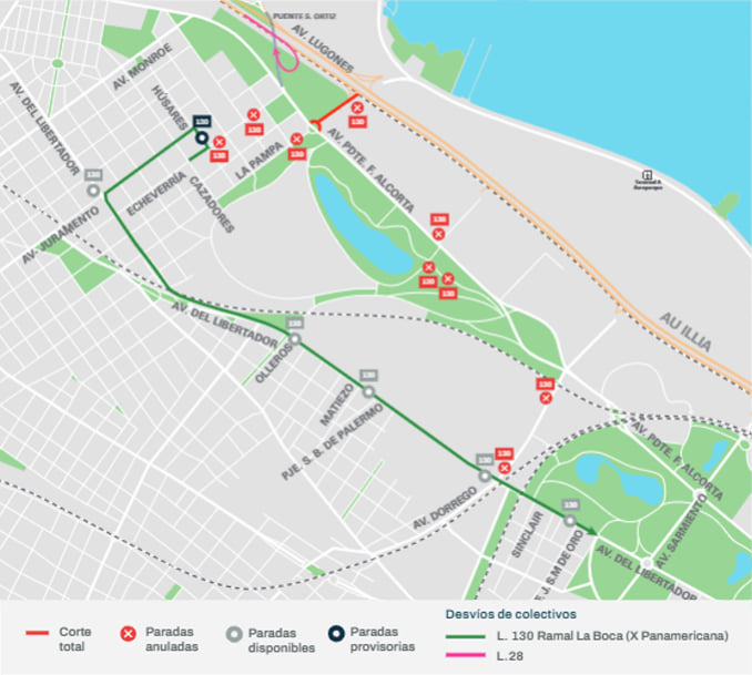 🚨 A partir del miércoles 11/03 se cerrará la calle La Pampa entre Av. Lugones y Av. Figueroa Alcorta, que afectará el recorrido habitual de las líneas de colectivo 130 y 28, las cuales deberán realizar desvíos preventivos durante la ejecución de las tareas.
