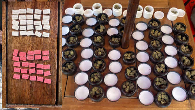 Durante la identificación y ante la presencia de testigos, los oficiales secuestraron del bolso de uno de los hombres 37 frascos plásticos con flores de marihuana, con un peso total de 241,8 gramos, 50 pastillas de éxtasis y dos teléfonos celulares.