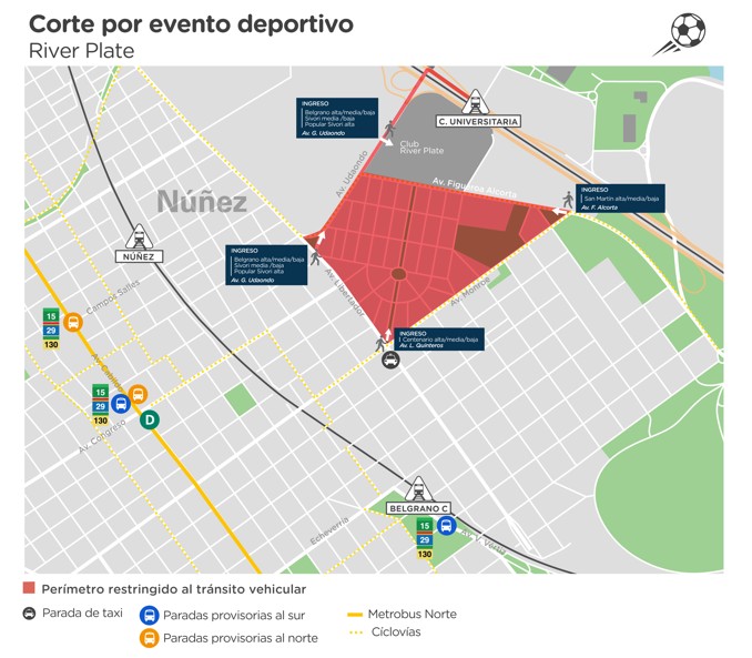 River Plate informa que en el partido de este martes, por disposición del Ministerio de Seguridad y Justicia de la Ciudad Autónoma de Buenos Aires, el acceso por el playón interno (altura canchas de tenis) estará completamente cerrado, por lo que el Club resalta la importancia de respetar los puntos de ingresos a las diferentes tribunas.